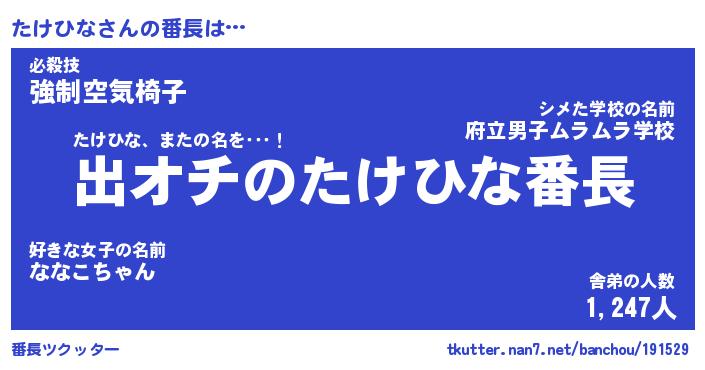 | 2回繰り返すあだ名 | 『たけたけ』『たたけけ』『うずうず』 |