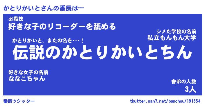 | 胡散臭い通販商品みたいなあだ名 | 『必ず成功するブレスレット…その名も「かとりかいと」』 |