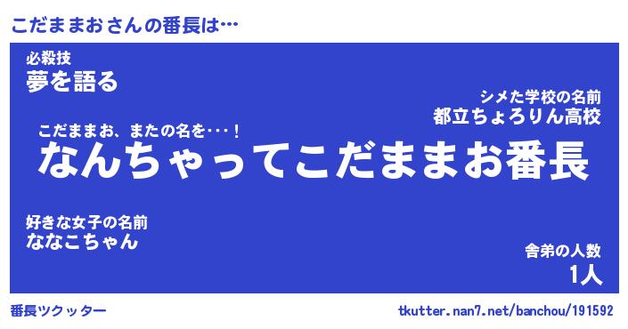| 肩書あだ名 | 『こだままお御曹司』『こだままお塾長』 |