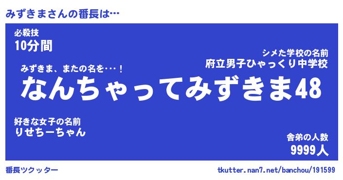 | 伝説のあだ名 | 『伝説のスナイパーみずきま』 |
