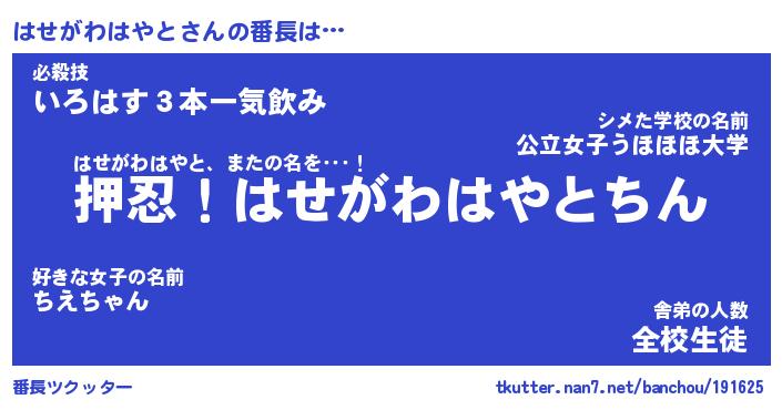 | ピコ太郎風あだ名 | 『ハコ四郎』『ピハ五郎』『ハセ八郎』 |