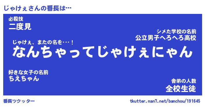 | ヒーロー風カッコイイあだ名 | 『スーパージャケェ』『暗黒騎士ジャ』 |