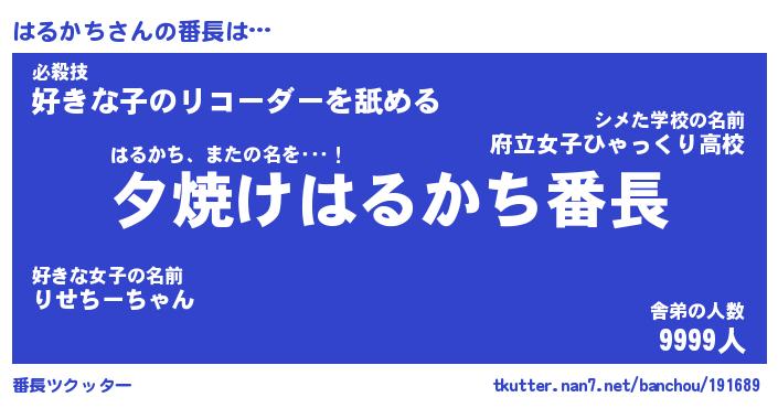 | ファンタジー風あだ名 | 『ハルフェル』『エターナルハルカチー』 |