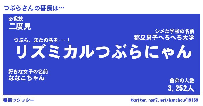 | 男性向けラノベタイトル風あだ名 | 『つぶらの憂鬱』 |