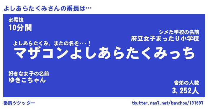 | ツイッター | よしあらたくみさんのツイッターID『namakemono_nyan』 |