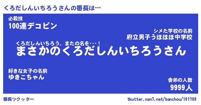 | 肩書あだ名 | 『くろだしんいちろう御曹司』 |