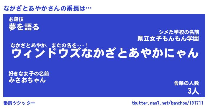 | ヒーロー風カッコイイあだ名 | 『スーパーナカザトアヤカ』 |