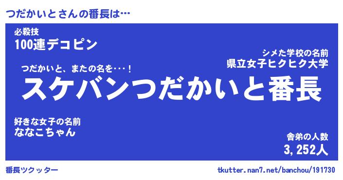 | ヘコむあだ名 | 『つだっふぃ~』『牛乳』『つだっぺ』 |