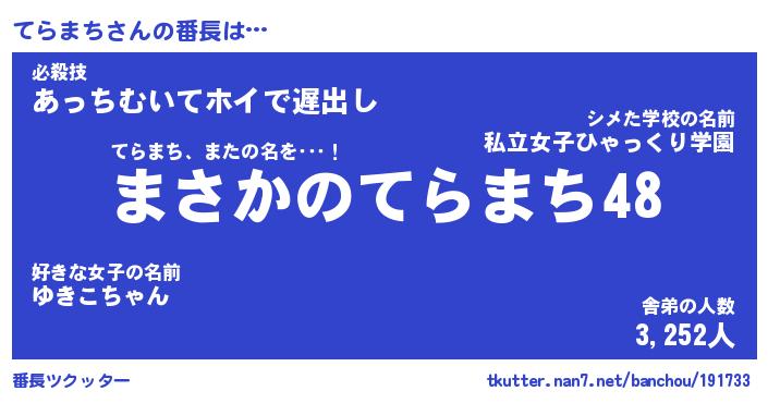 | 伝説のあだ名 | 『伝説のスナイパーてらまち』 |