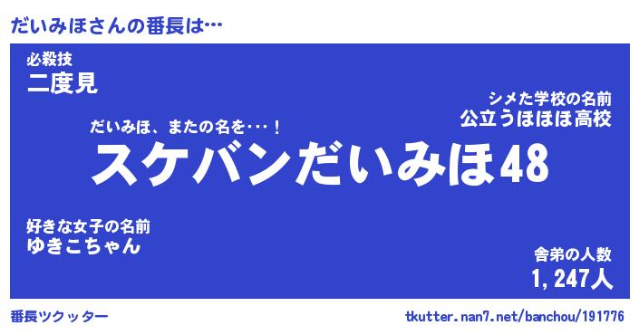 | 肩書あだ名 | 『だいみほ店長』『だいみほ国家主席』 |