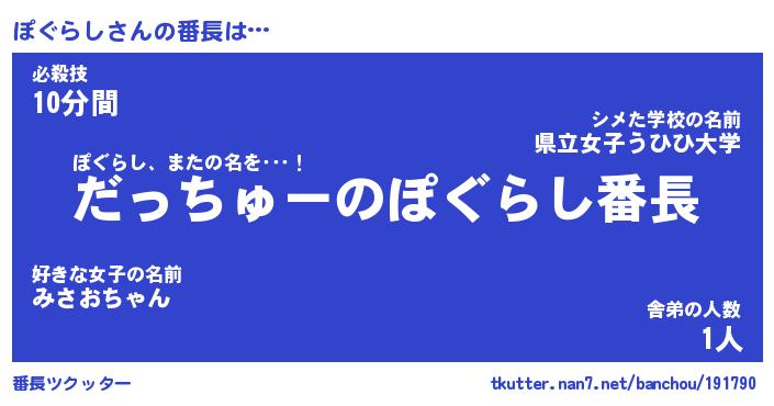 | 意味不明あだ名 | 『ペロリンぽぐらし』『永久保存ぽぐらし』 |