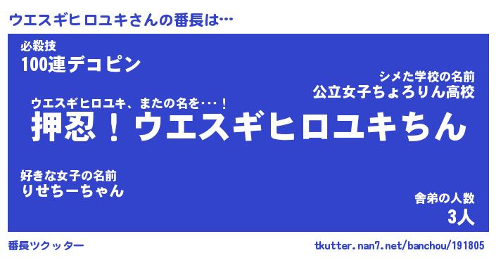| 意味不明あだ名 | 『ペロリンウエスギヒロユキ』 |