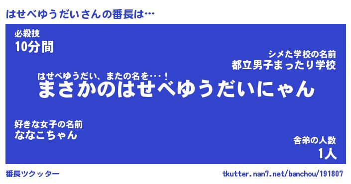 | 意味不明あだ名 | 『ペロリンはせべゆうだい』 |