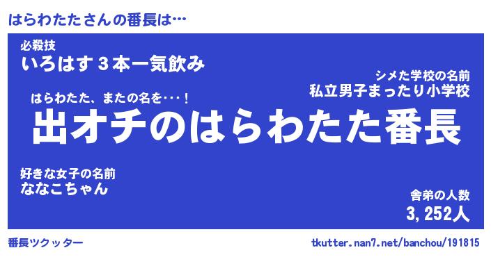 | ヒーロー風カッコイイあだ名 | 『スーパーハラワタタ』『銀牙騎士ハラ』 |