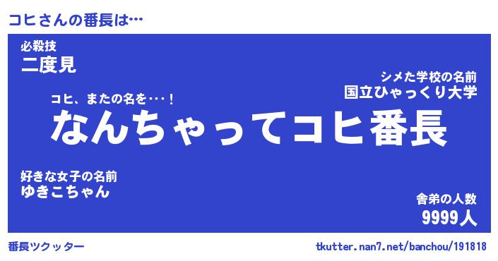 | ピコ太郎風あだ名 | 『ココ一郎』『ピコ史郎』『コヒ十郎』 |