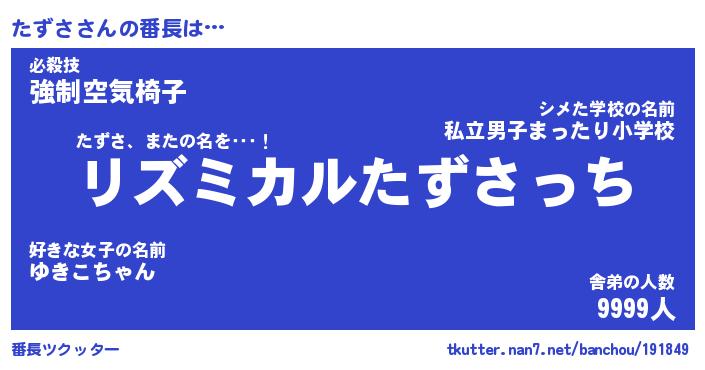 | ヘコむあだ名 | 『たずにー』『なまこ酢』『たずっ子』 |