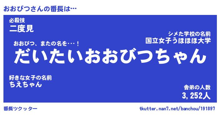 | 男性向けラノベタイトル風あだ名 | 『おおびつの憂鬱』 |