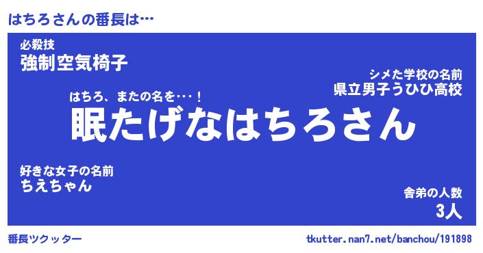 | ヒーロー風カッコイイあだ名 | 『スーパーハチロ』『ウルトラはちろマン』 |