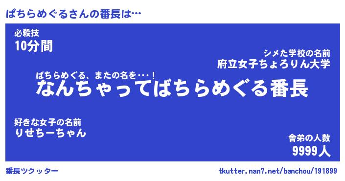 | ヒーロー風カッコイイあだ名 | 『スーパーバチラメグル』『天弓騎士バチ』 |