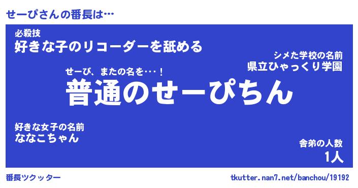 | 伝説のあだ名 | 『不死鳥のスナイパーせーぴ』 |