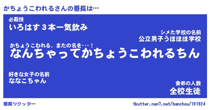 | 意味不明あだ名 | 『ペロリンかちょうこわれる』 |