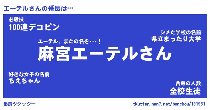| 意味不明あだ名 | 『ペロリンエーテル』『永久保存エーテル』 |