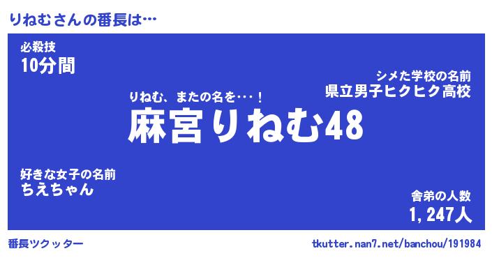 | 意味不明あだ名 | 『ペロリンりねむ』『りねむフォーエバー』 |