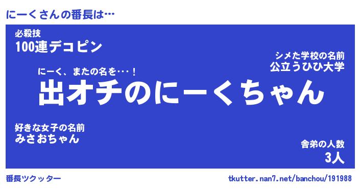 | ヘコむあだ名 | 『にーにゅー』『つくし』『にー太郎』 |