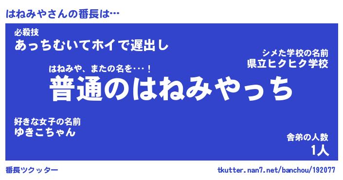 | 意味不明あだ名 | 『ペロリンはねみや』『永久保存はねみや』 |