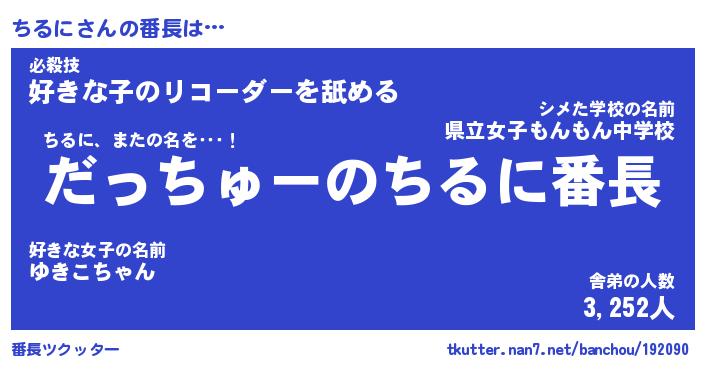 | 意味不明あだ名 | 『ペロリンちるに』『ちるにフォーエバー』 |
