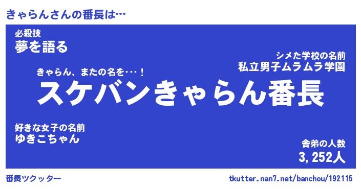 | 意味不明あだ名 | 『ペロリンきゃらん』『永久保存きゃらん』 |