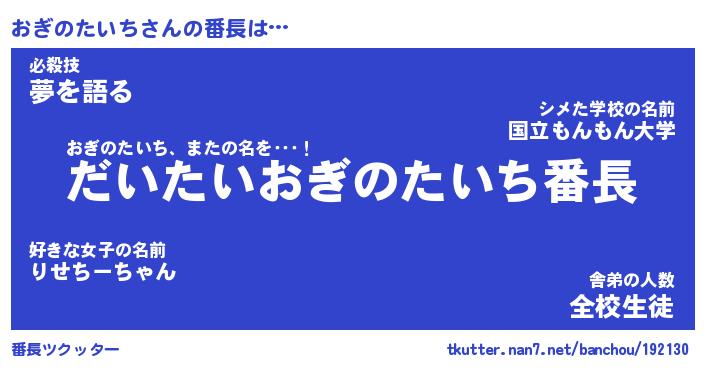| 男性向けラノベタイトル風あだ名 | 『おぎのたいちの憂鬱』 |