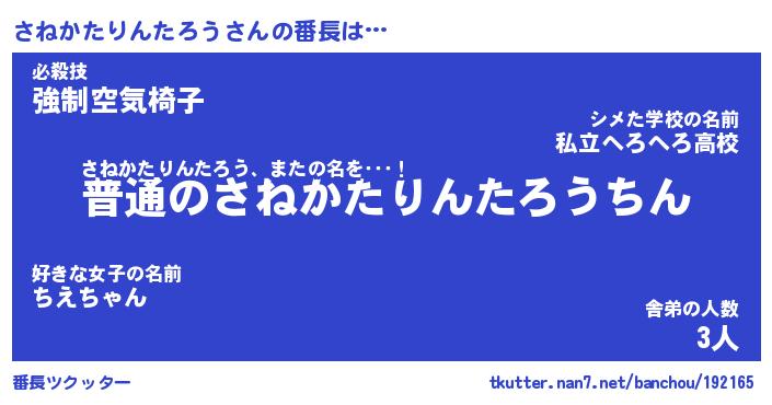 | 伝説のあだ名 | 『不死鳥のスナイパーさねかたりんたろう』 |