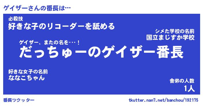 | 肩書あだ名 | 『ゲイザー御曹司』『ゲイザー国家主席』 |