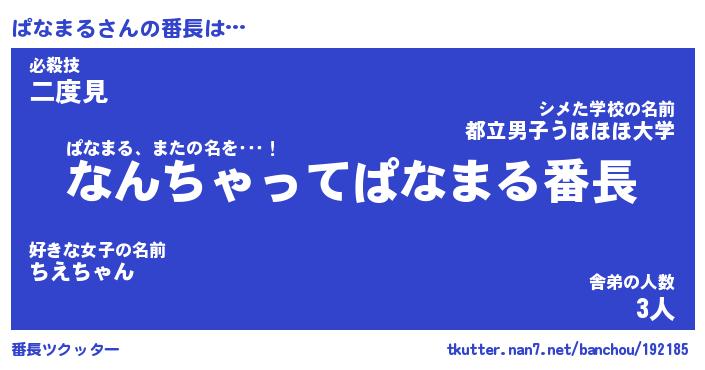 | 伝説のあだ名 | 『伝説のスナイパーぱなまる』 |