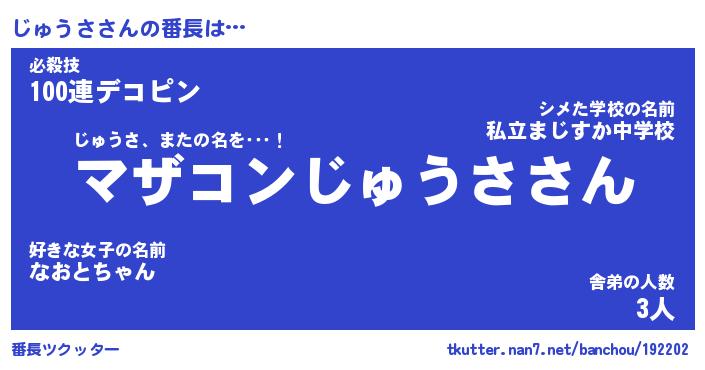 | ポケモン風あだ名 | 『ジュチュウ』『ジュウダネ』 |