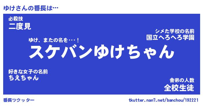 | 意味不明あだ名 | 『ペロリンゆけ』『ゆけフォーエバー』 |