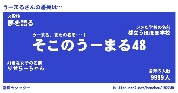 | 肩書あだ名 | 『うーまる社長令嬢』『うーまる総理大臣』 |