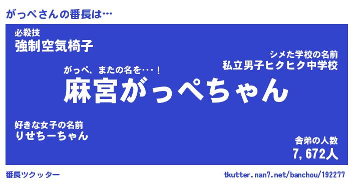 | ヒーロー風カッコイイあだ名 | 『スーパーガッペ』『ウルトラがっぺマン』 |