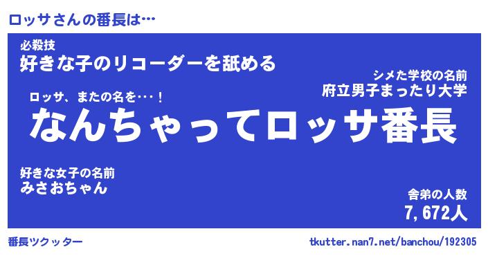 | ポケモン風あだ名 | 『ロッチュウ』『ロッサダネ』 |