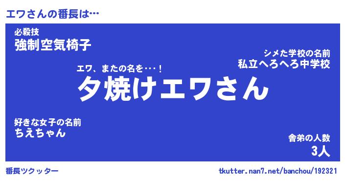 | ヒーロー風カッコイイあだ名 | 『スーパーエワ』『ウルトラエワマン』 |