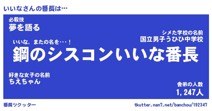 | ヒーロー風カッコイイあだ名 | 『スーパーイイナ』『ウルトラいいなマン』 |