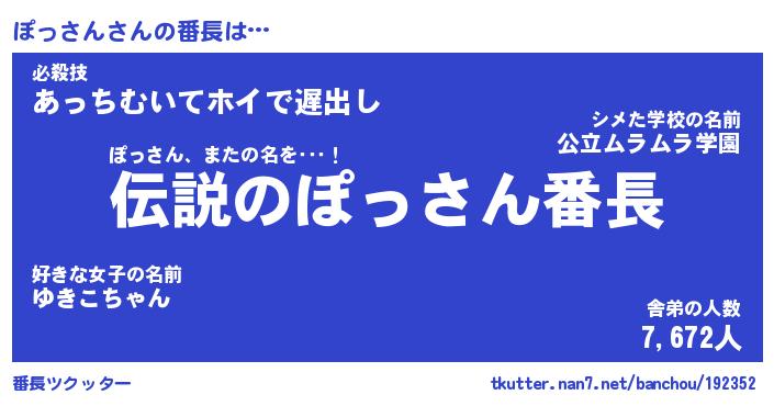 | 2回繰り返すあだ名 | 『ぽっぽっ』『ぽぽっっ』『ぬらぬら』 |