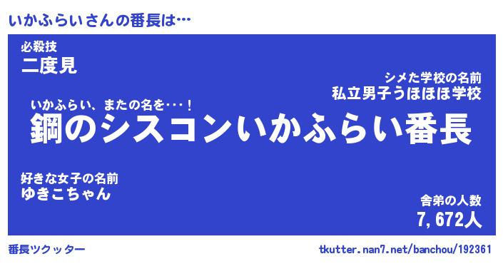 | ファンタジー風あだ名 | 『イカフェル』『エターナルイカフライー』 |