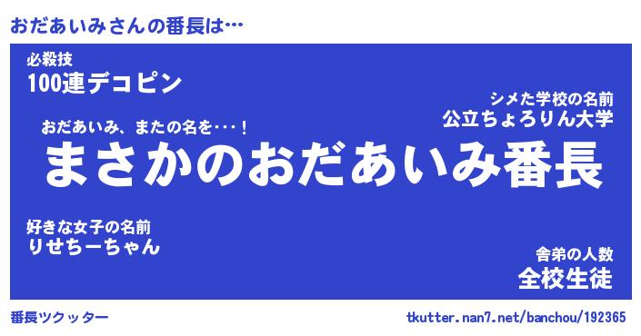 | ポケモン風あだ名 | 『オダチュウ』『オダアダネ』 |