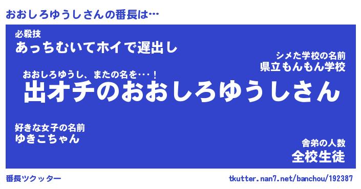 | 男性向けラノベタイトル風あだ名 | 『おおしろゆうしの憂鬱』 |