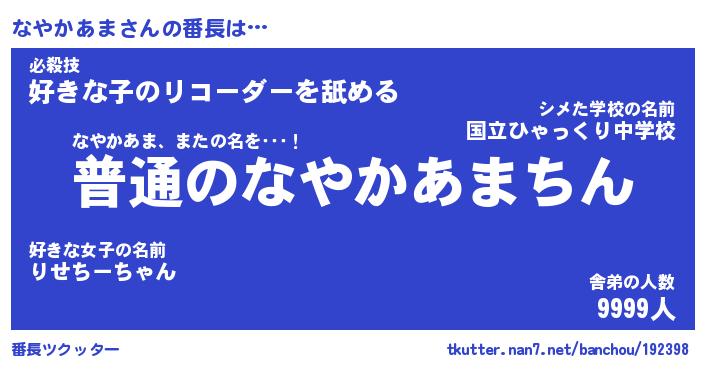 | ファンタジー風あだ名 | 『ナヤフェル』『エターナルナヤカアマー』 |