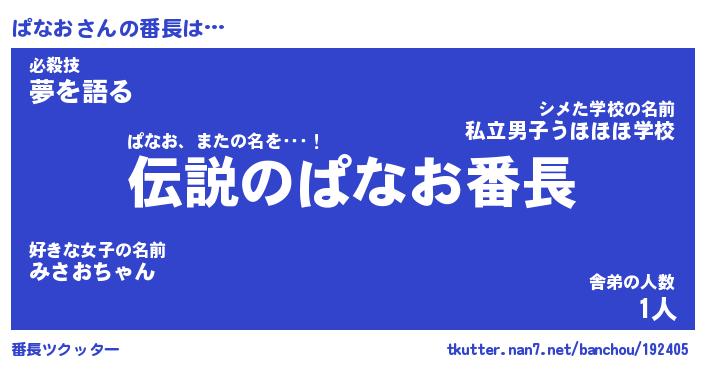 | 肩書あだ名 | 『ぱなおCEO』『ぱなお総理大臣』 |