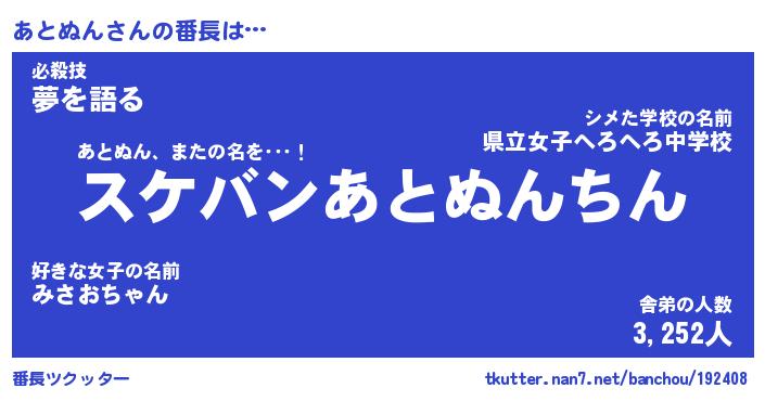 | 意味不明あだ名 | 『ペロリンあとぬん』『永久保存あとぬん』 |