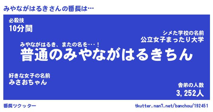 | 伝説のあだ名 | 『不死鳥のスナイパーみやながはるき』 |